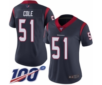 Women's Houston Texans #51 Dylan Cole Navy Blue Team Color Vapor Untouchable Limited Player 100th Season Football Jersey