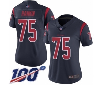 Women's Houston Texans #75 Martinas Rankin Limited Navy Blue Rush Vapor Untouchable 100th Season Football Jersey