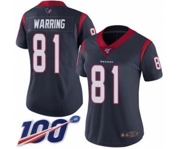 Women's Houston Texans #81 Kahale Warring Navy Blue Team Color Vapor Untouchable Limited Player 100th Season Football Jersey