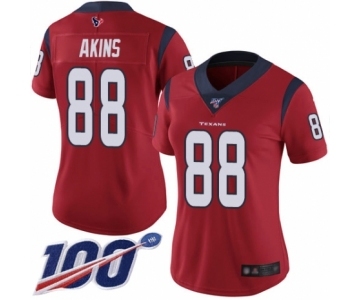 Women's Houston Texans #88 Jordan Akins Red Alternate Vapor Untouchable Limited Player 100th Season Football Jersey