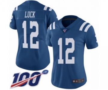 Women's Indianapolis Colts #12 Andrew Luck Limited Royal Blue Rush Vapor Untouchable 100th Season Football Jersey