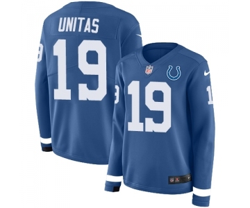Women's Indianapolis Colts #19 Johnny Unitas Limited Blue Therma Long Sleeve Football Jersey