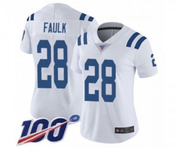 Women's Indianapolis Colts #28 Marshall Faulk White Vapor Untouchable Limited Player 100th Season Football Jersey