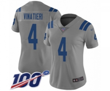 Women's Indianapolis Colts #4 Adam Vinatieri Limited Gray Inverted Legend 100th Season Football Jersey