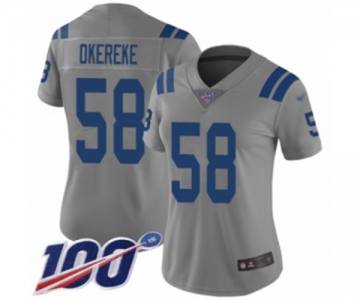 Women's Indianapolis Colts #58 Bobby Okereke Limited Gray Inverted Legend 100th Season Football Jersey