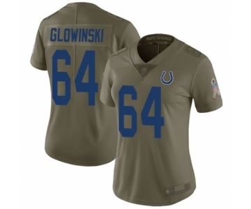 Women's Indianapolis Colts #64 Mark Glowinski Limited Olive 2017 Salute to Service Football Jersey