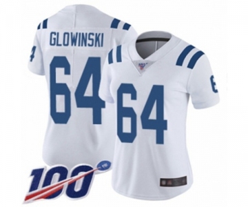 Women's Indianapolis Colts #64 Mark Glowinski White Vapor Untouchable Limited Player 100th Season Football Jersey
