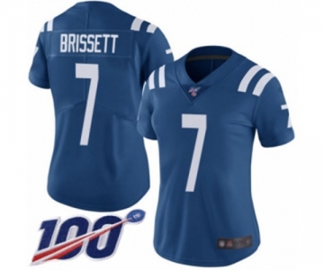 Women's Indianapolis Colts #7 Jacoby Brissett Royal Blue Team Color Vapor Untouchable Limited Player 100th Season Football Jersey