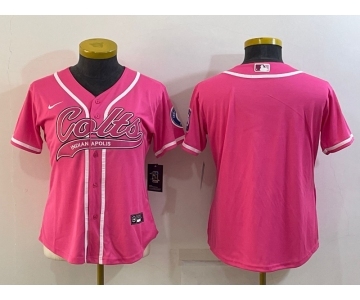 Women's Indianapolis Colts Blank Pink With Patch Cool Base Stitched Baseball Jersey