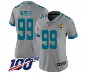 Women's Jacksonville Jaguars #99 Marcell Dareus Silver Inverted Legend Limited 100th Season Football Jersey
