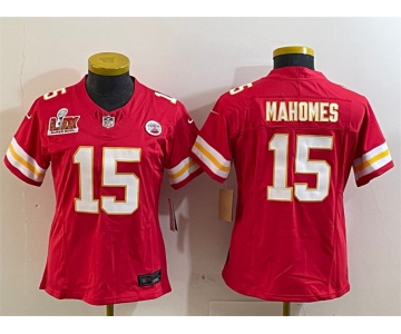 Women's Kansas City Chiefs #15 Patrick Mahomes Red 2025 Super Bowl LIX Patch F.U.S.E. Vapor Untouchable Limited Stitched Football Jersey