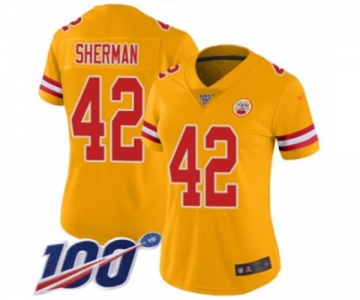 Women's Kansas City Chiefs #42 Anthony Sherman Limited Gold Inverted Legend 100th Season Football Jersey