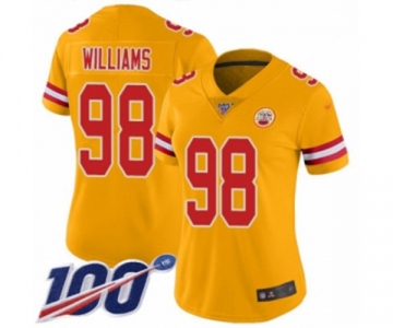 Women's Kansas City Chiefs #98 Xavier Williams Limited Gold Inverted Legend 100th Season Football Jersey
