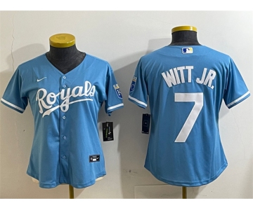 Women's Kansas City Royals #7 Bobby Witt Jr. Light Blue Cool Base Stitched Jersey
