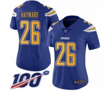 Women's Los Angeles Chargers #26 Casey Hayward Limited Electric Blue Rush Vapor Untouchable 100th Season Football Jersey