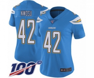 Women's Los Angeles Chargers #42 Uchenna Nwosu Electric Blue Alternate Vapor Untouchable Limited Player 100th Season Football Jersey