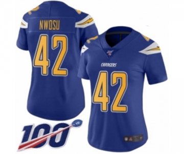 Women's Los Angeles Chargers #42 Uchenna Nwosu Limited Electric Blue Rush Vapor Untouchable 100th Season Football Jersey