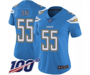 Women's Los Angeles Chargers #55 Junior Seau Electric Blue Alternate Vapor Untouchable Limited Player 100th Season Football Jersey