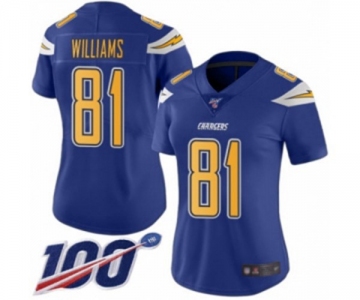 Women's Los Angeles Chargers #81 Mike Williams Limited Electric Blue Rush Vapor Untouchable 100th Season Football Jersey