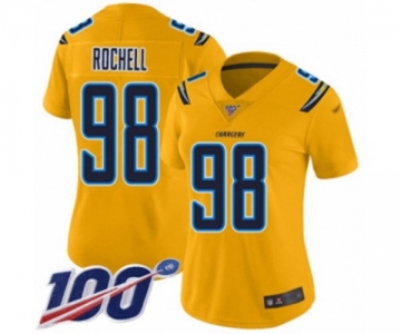 Women's Los Angeles Chargers #98 Isaac Rochell Limited Gold Inverted Legend 100th Season Football Jersey