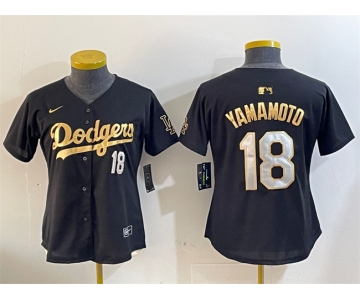 Women's Los Angeles Dodgers #18 Yoshinobu Yamamoto Black Gold Limited Stitched Baseball Jersey