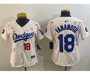 Women's Los Angeles Dodgers #18 Yoshinobu Yamamoto Cream 2025 Tokyo Series Limited Stitched Baseball Jersey