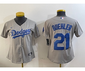 Women's Los Angeles Dodgers #21 Walker Buehler Grey Stitched Cool Base Nike Jersey