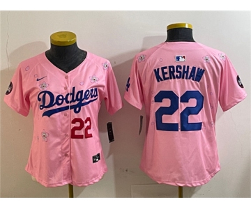 Women's Los Angeles Dodgers #22 Clayton Kershaw Pink 2025 Tokyo Series Limited Stitched Baseball Jersey