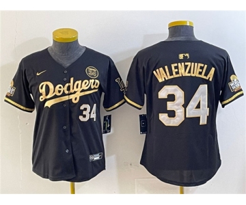 Women's Los Angeles Dodgers #34 Fernando Valenzuela Black Gold 2024 World Series With Fernando Patch Vapor Limited Stitched Baseball Jersey