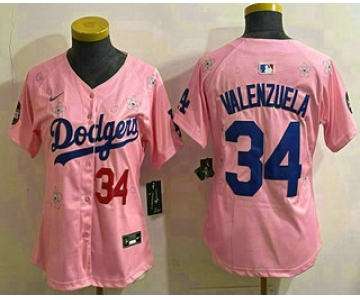 Women's Los Angeles Dodgers #34 Fernando Valenzuela Pink 2025 Tokyo Series Limited Stitched Jersey