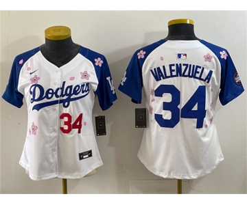 Women's Los Angeles Dodgers #34 Fernando Valenzuela White Royal 2025 Tokyo Series Limited Stitched Baseball Jersey