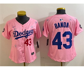 Women's Los Angeles Dodgers #43 Anthony Banda Pink 2025 Tokyo Series Limited Stitched Baseball Jersey
