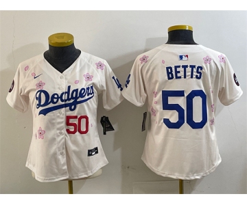 Women's Los Angeles Dodgers #50 Mookie Betts Cream 2025 Tokyo Series Limited Stitched Baseball Jersey