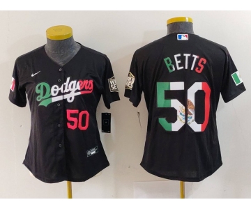 Women's Los Angeles Dodgers #50 Mookie Betts Number Mexico Black Cool Base Stitched Jersey
