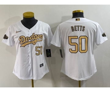 Women's Los Angeles Dodgers #50 Mookie Betts Number White 2022 All Star Stitched Cool Base Nike Jersey