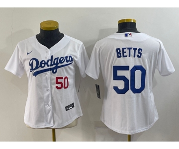 Women's Los Angeles Dodgers #50 Mookie Betts White With Red Stitched MLB Cool Base Nike Jersey
