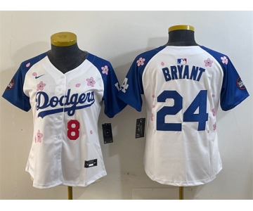 Women's Los Angeles Dodgers Front #8 Back #24 Kobe Bryant White Royal 2025 Tokyo Series Limited Stitched Baseball Jersey