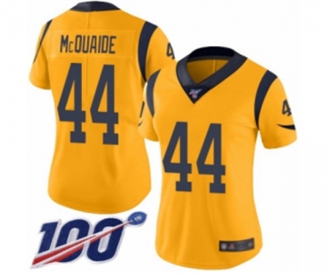 Women's Los Angeles Rams #44 Jacob McQuaide Limited Gold Rush Vapor Untouchable 100th Season Football Jersey