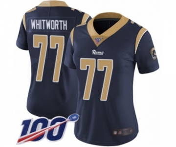 Women's Los Angeles Rams #77 Andrew Whitworth Navy Blue Team Color Vapor Untouchable Limited Player 100th Season Football Jersey