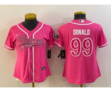 Women's Los Angeles Rams #99 Aaron Donald Pink With Patch Cool Base Stitched Baseball Jersey