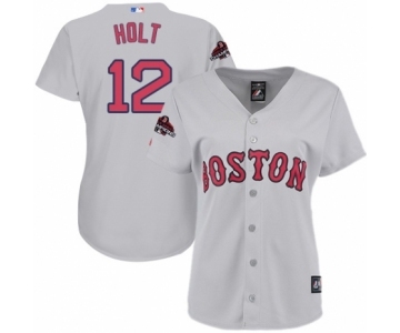 Women's Majestic Boston Red Sox #12 Brock Holt Authentic Grey Road 2018 World Series Champions MLB Jersey