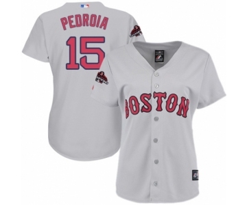 Women's Majestic Boston Red Sox #15 Dustin Pedroia Authentic Grey 2018 World Series Champions MLB Jersey