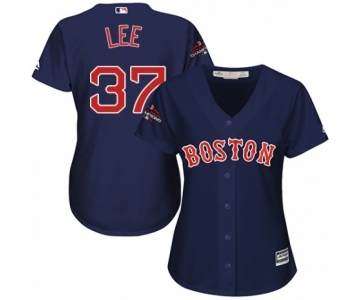 Women's Majestic Boston Red Sox #37 Bill Lee Authentic Navy Blue Alternate Road 2018 World Series Champions MLB Jersey
