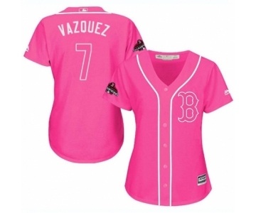 Women's Majestic Boston Red Sox #7 Christian Vazquez Authentic Pink Fashion 2018 World Series Champions MLB Jersey