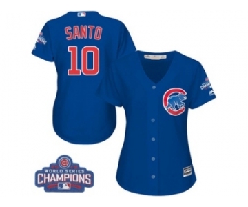Women's Majestic Chicago Cubs #10 Ron Santo Authentic Royal Blue Alternate 2016 World Series Champions Cool Base MLB Jersey