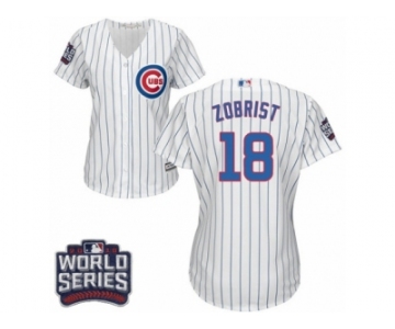 Women's Majestic Chicago Cubs #18 Ben Zobrist Authentic White Home 2016 World Series Bound Cool Base MLB Jersey