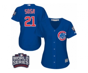Women's Majestic Chicago Cubs #21 Sammy Sosa Authentic Royal Blue Alternate 2016 World Series Bound Cool Base MLB Jersey