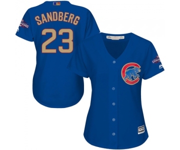 Women's Majestic Chicago Cubs #23 Ryne Sandberg Authentic Royal Blue 2017 Gold Champion MLB Jersey