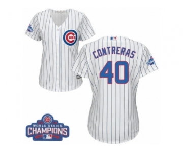 Women's Majestic Chicago Cubs #40 Willson Contreras Authentic White Home 2016 World Series Champions Cool Base MLB Jersey