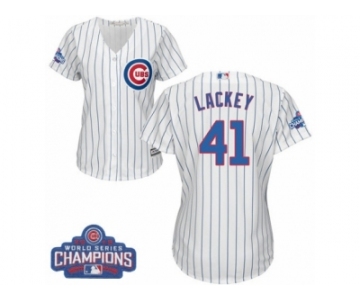 Women's Majestic Chicago Cubs #41 John Lackey Authentic White Home 2016 World Series Champions Cool Base MLB Jersey